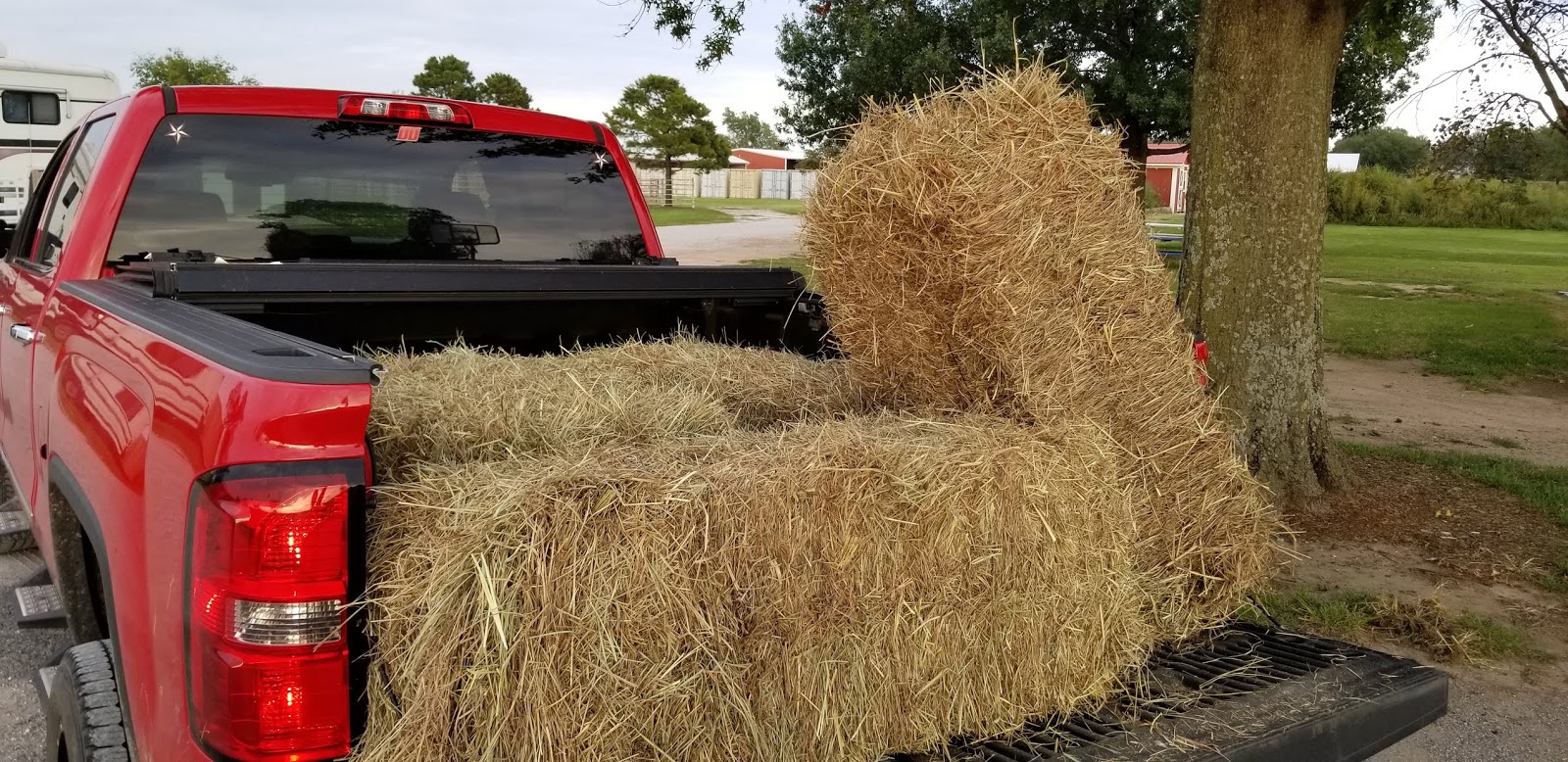 All right back to the drawing board, Little Man is too small to go in there now, what am I gonna do. I decided to put him in the chicken pen in a small brooder cage until I figured this one out. I found some more rolled fencing that my beautiful neighbor gave to me last week after they redid their whole back yard fencing and I used that up against the farmers hog panel wall and completely fence the back side of the paddock. I added a small Farrow Box / shelter to keep them dry and out of the sun, now off to buy some hay bales to push up against the weakest points of the fence line. Back in Little Wee Man went.